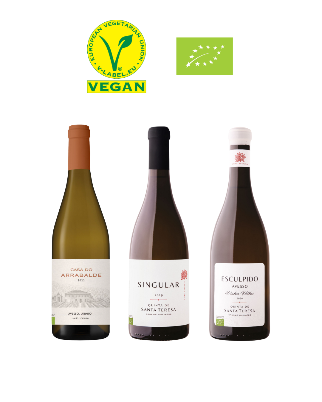 Three organic, vegan wines that capture the purity and freshness of Portugal’s green north. Crafted with care from sustainable vineyards, this trio — Casa do Arrabalde, Singular, and Esculpido — showcases crisp whites full of texture, minerality, and natural expression. Clean, vibrant, and beautifully balanced.